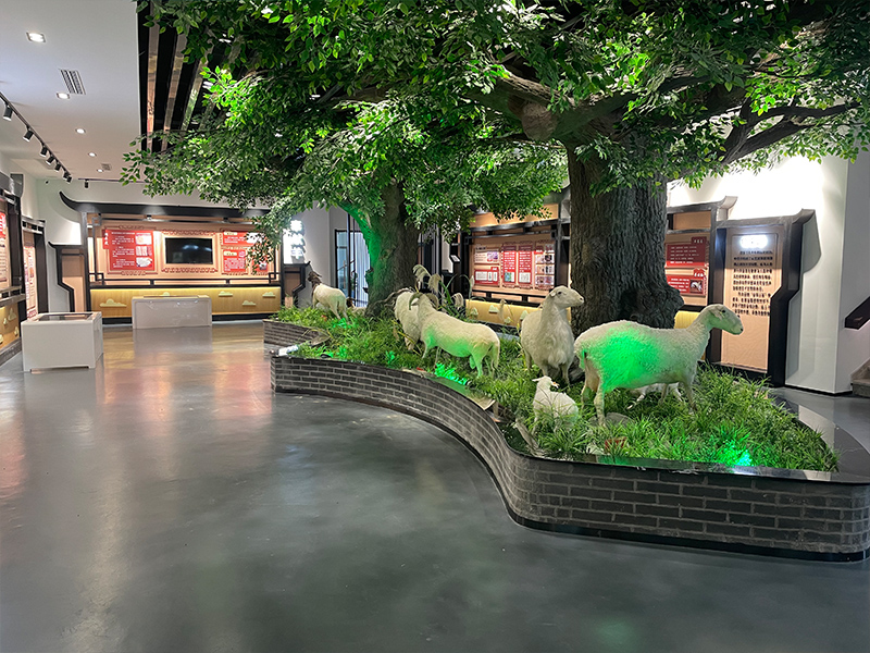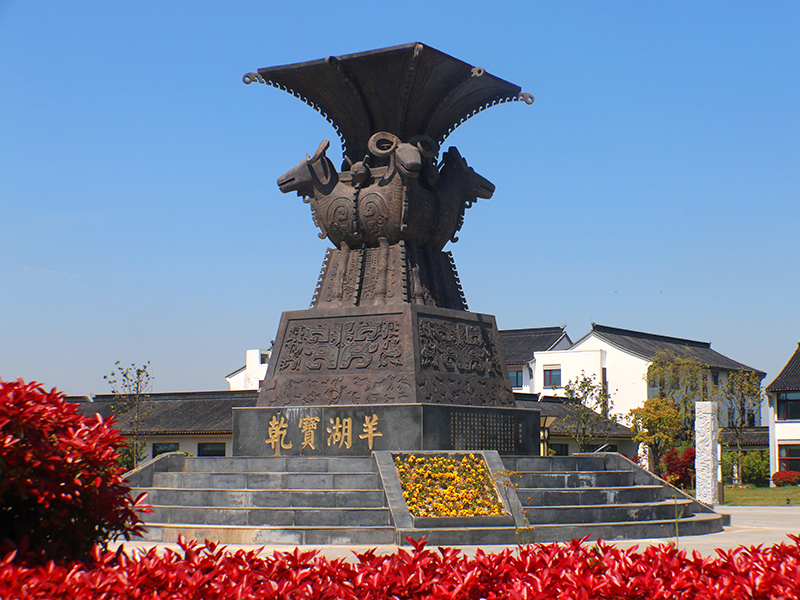 乾寶湖羊牧隆灣,以弘揚羊文化為己任,開辦了國內第一家以羊文化為主題的博物館——羊文化博物館。館內收藏以羊為形象的器物11件。其中晉代的青釉羊舍,讓人一睹1700多年前湖羊飼養的真實狀態;宋代的吉羊緙絲圖,一寸緙絲一寸金,在緙絲上描繪吉羊的形象,也凸顯了羊在宋代的崇高地位;明代的鎏金奔羊,惟妙惟肖、熠熠生輝。館內還陳列有歷代名家羊圖數十件,可謂“羊羊”大觀。
